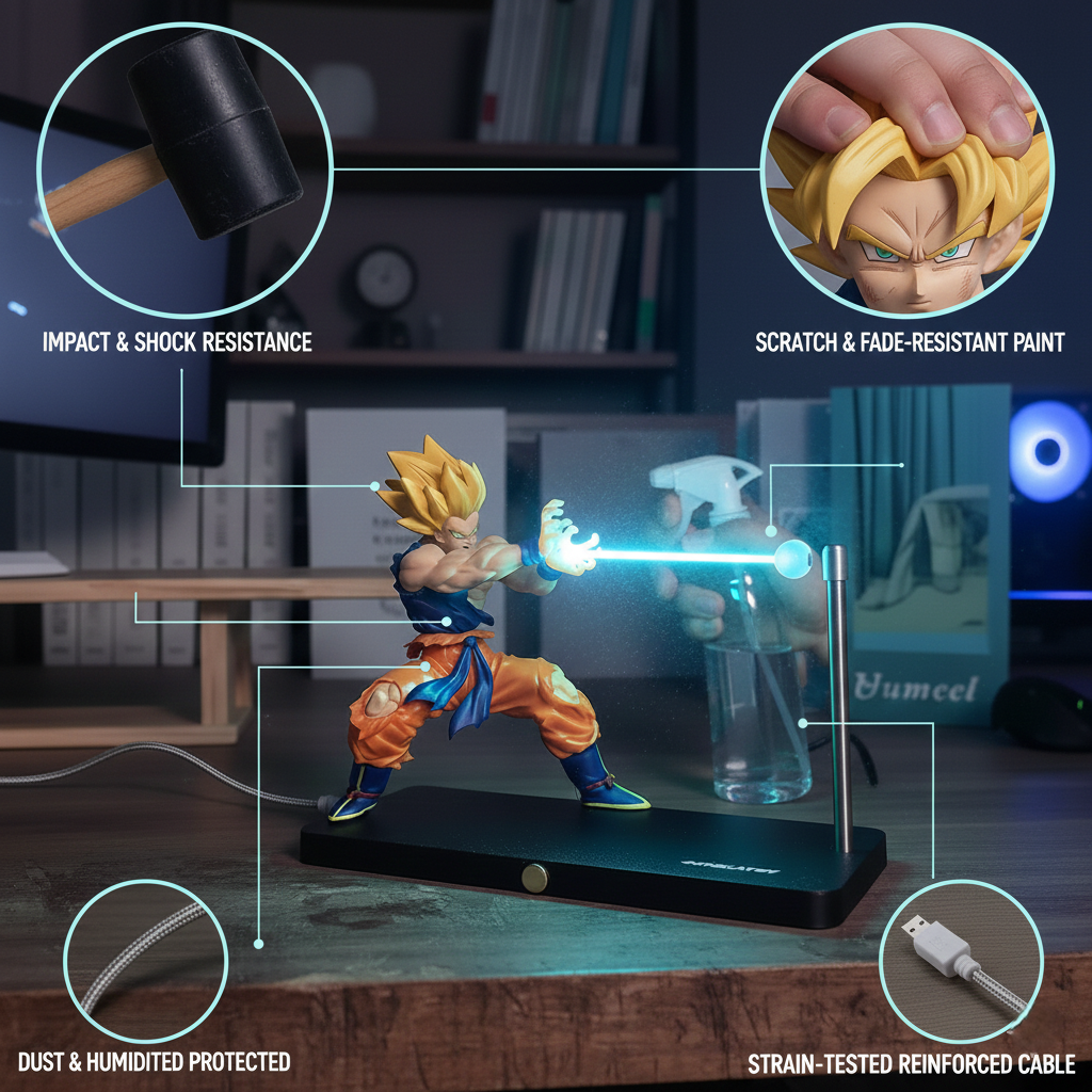 Answer 1: This figure features an intricate design capturing the character's fierce expression and dynamic pose, serves as a functional night light providing a warm glow, and is made from high-quality durable materials ensuring longevity and vibrant colors.