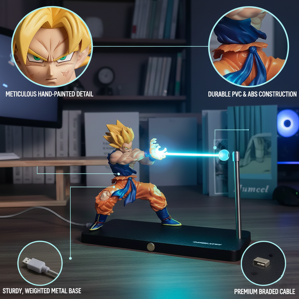 Elevate your space with a dynamic figure that embodies a legendary warrior unleashing the iconic Kamehameha wave, doubling as a captivating night light to ignite your passion for anime.